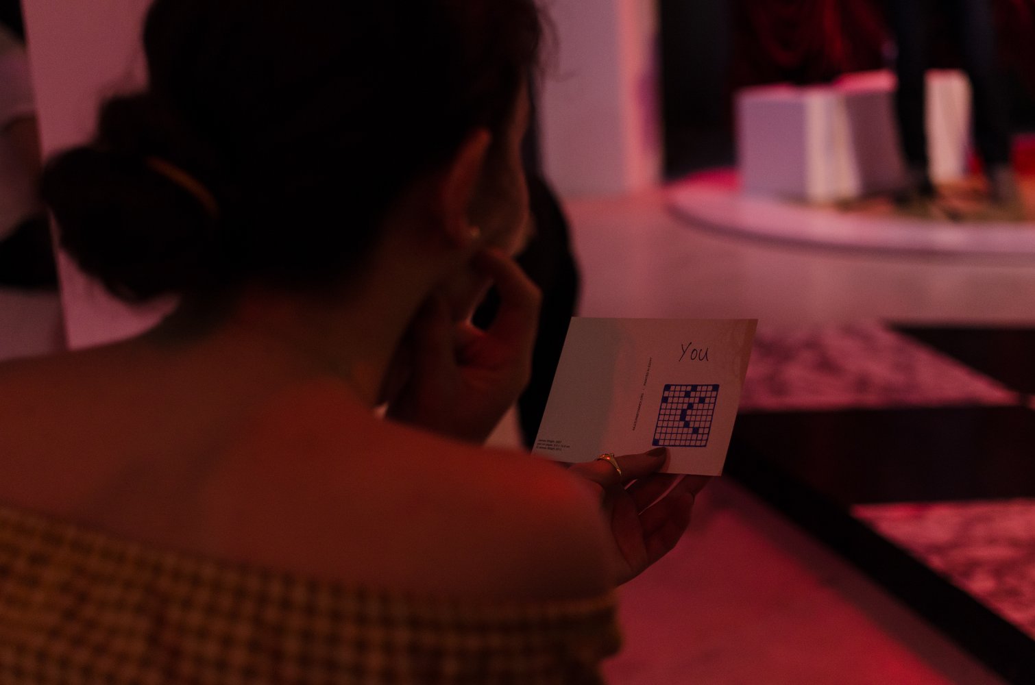 كان لدينا كلمة بالعربية وأخرى بالإنجليزية لـكل حرف من الـ ٢٨ حرفاً في الأبجدية العربية، وكان لدينا سبّورة بيضاء. قام رسّام الكاريكاتير أنديل برسم شرح للكلمة اعتماداً على توجيهات ممنوحة له من قبل فنانين وكتّاب آخرين، ومع وقت محدود لكل رسمة. كان على الجمهور أن تخمّن الكلمة التي تم رسمها، والتخمين الفائز كسب الكوكتيل الذي تم إعداده في لحظتها.