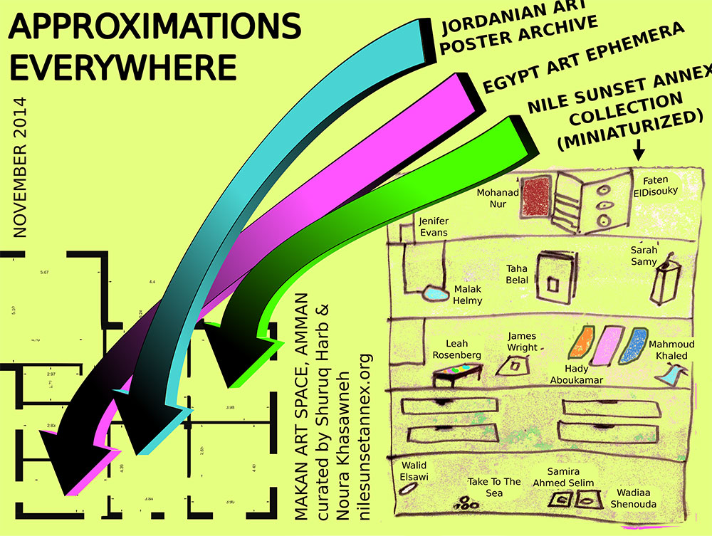 Makan Art Space hosted the first exhibition of Nile Sunset Annex's contemporary art collection in Amman. Displayed in Makan's library, the show consists of miniaturized replicas of artworks by 15 artists, while in the kitchen there was a pint-sized iteration of Nile Sunset Annex's archive of posters from art exhibitions in Egypt in the past 25 years. This was mirrored by a second, new archive of Jordanian posters.