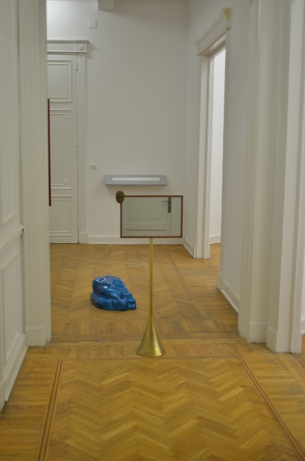 The materials out of which these artworks have been made include wood, fiberglass, mud, plastic, cardboard, foam, photography, mirrors and various metals. In terms of display, some stand or spread out directly on the floor, others hang on the walls, and a couple rest on a plinth or a table. They make a persuasive case that objects are not passive or lifeless, nor pointers toward concepts or puzzles to be decoded. They are made up of tensions, forces, gestures, processes and exchanges and we can open our eyes to them if we want.