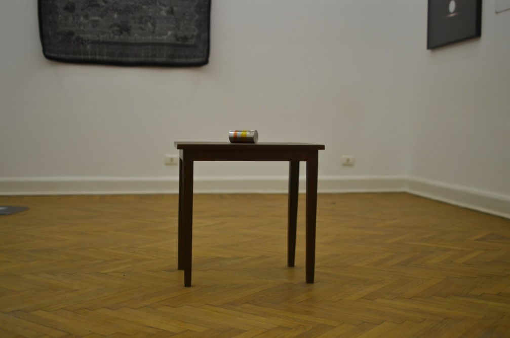 Hassan Khan, Dense Object, 2013, cylindrical object composed of aluminum, brass, copper, iron, stainless steel, 15 x 6 cm.