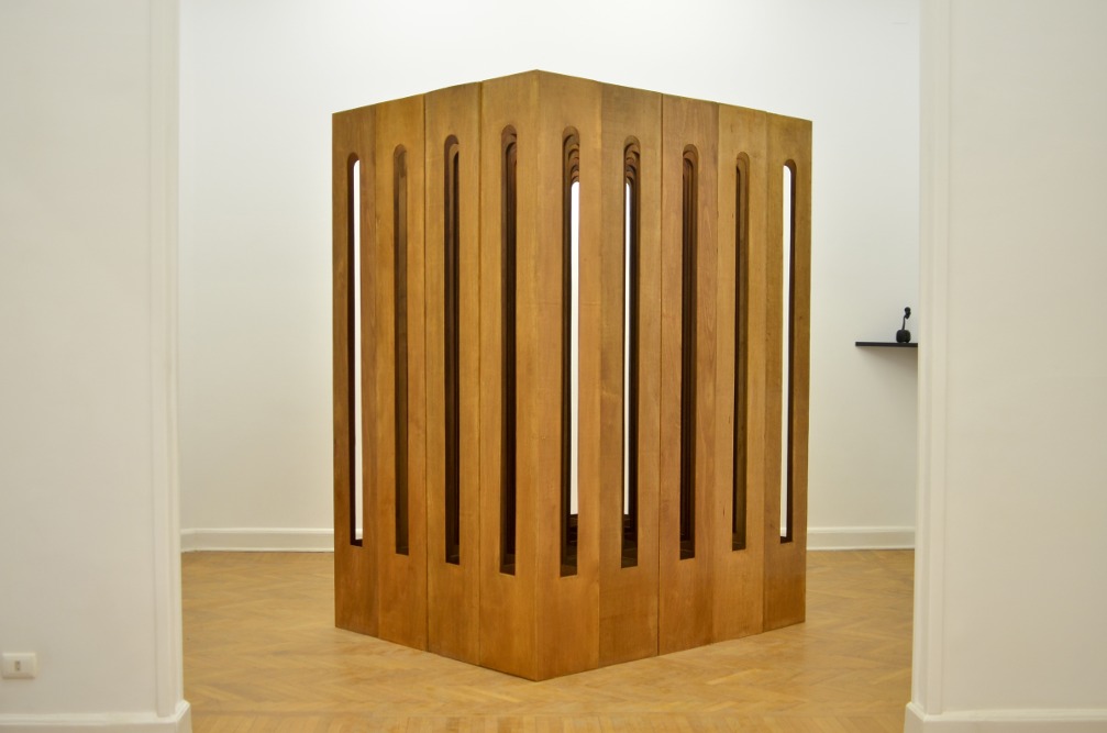 Doa Aly, Sculpture #2 (The House of Rumour), 2015, polished wood, 120 x 120 x 120 cm. Edition 3 + 1AP.