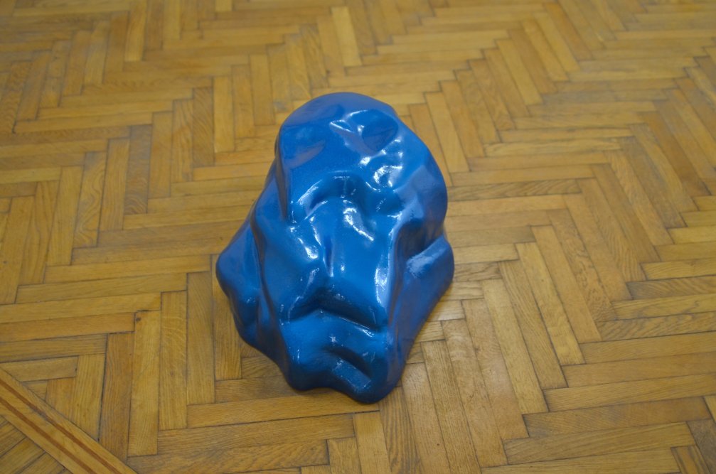 Malak Helmy, A salt rock exits a video and becomes a puddle of blue #1, 2013, fiberglass, 34 x 46 x 26 cm.
