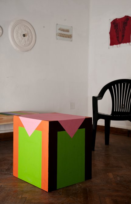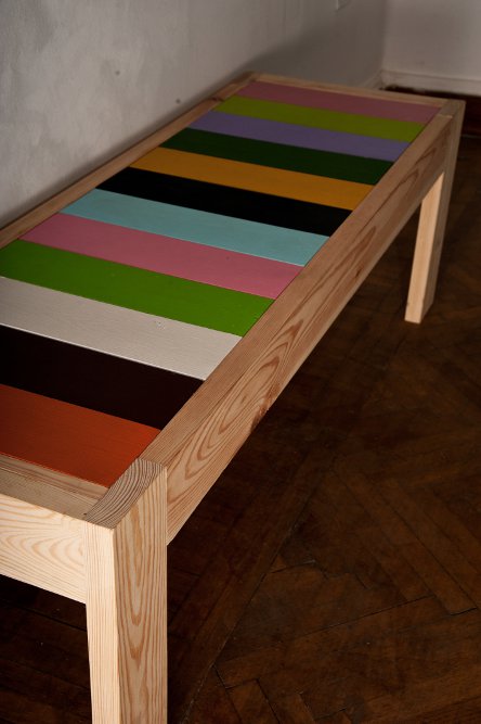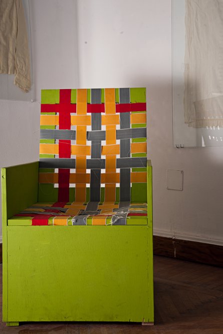 The replicas were of art chairs by: Richard Artschwager, Lina Bo Bardi, Etienne Bossut, Martino Gamper, David Hammons, Mary Heilmann, Leah Rosenberg