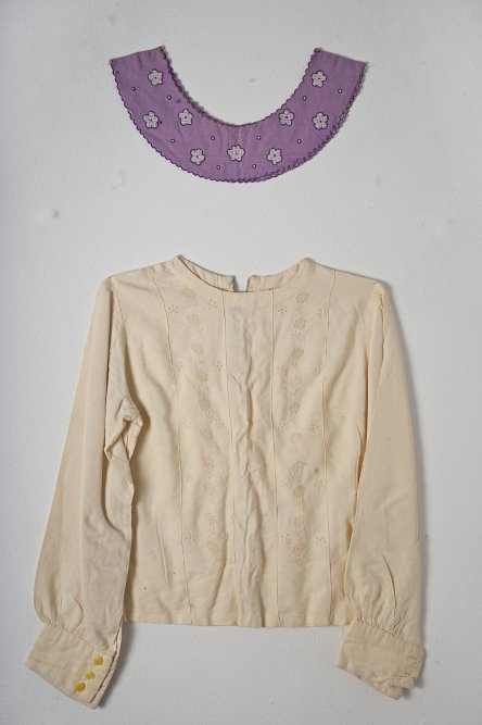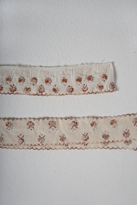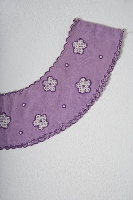قطع من التطريز من أعمال سميرة أحمد سالم، صنعت في كفر الشيخ بين آواخر الخمسينيات و أوائل الثمانينات، عرضت في "ملحق غروب علي النيل" مع نسخ من كراسِ صنعت كأعمالٍ فنّية يمكن للحضور الجلوس عليهم.