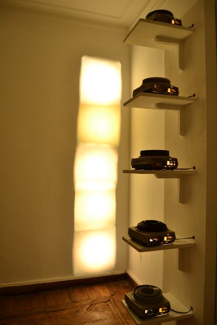 For Malak Helmy’s exhibition Nile Sunset Annex extended onto its roof to accommodate a gleaming salt structure and a shiny rock shape. In the space itself, there were earlier works that had never been shown in Egypt before, "Chapter 3 - Lost Referents of Some Attraction" (2012) and "Score for the Occasional City" (2010). Selected from an ongoing series, "Records from the Excited State," the first was a video work and the second involved five Kodak Ektagraphic AF-2 slide projectors. The works had connections with a specific landscape, and they were