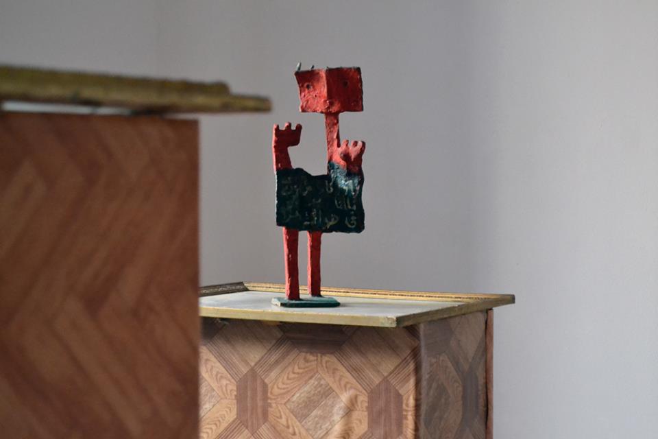 المنحوتات الحديدية لـ صبحي جرجس (١٩٢٩ - ٢٠١٣) تتوازن علي قاعدتي تمثال مختلفتين، مرحتين لمريم إلياس وبارادوكسيا، مصنوعتين من قشرة الذهب، رقائق الخشب والورق المقوي الملون. قاعدة ثالثة موجودة بمفردها. علي الحئط هنالك نسخة من ملحق غروب علي النيل للوحة لوديع شنودة (١٩٢٣- ١٩٦٩) معروضة في متحف الإسكندرية للفنون الجميلة الذي أُعيد فتحه قريباً.الشِبهمتحف: مريم إلياس، بارادوكسيا، صبحي جرجس ووديع شنودة